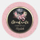 Floral Grad Cap Pink Bow Confetti Classic Round Sticker