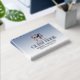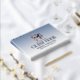 This graduation guest book design featured a grad hat with a floral wreath on a blue to white ombre and customisable dark blue typography.
