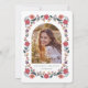 Elegant floral graduation invitation featuring a romantic ribbon frame and colorful botanical border. Perfect for garden, spring, and feminine graduation parties, this design aligns with trending floral, vintage, and watercolor-style invitations. Easily personalize for a timeless and sophisticated graduation celebration.Original artwork by Caroline Bonne Muller.