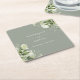 Floral Greenery Elegant Sage Green Wedding Square Paper Coaster
