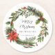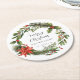 Floral Greenery Red Berries Family Christmas Party Round Paper Coaster