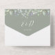 All-in-one greenery floral wedding invitation featuring elegant hearts script typography and monogram initials on a sage green background. The invitation includes a perforated RSVP card that can be individually addressed or left blank for you to handwrite your guest's address details. Designed by Thisisnotme©