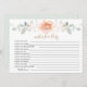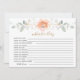 "Wishes for Baby" Baby Shower Game - this design features watercolor illustration of green and gold foliage and apricot-peach rose in a full bloom.