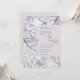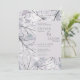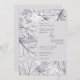 These 5" x 7" wedding invitations feature an abstract leaf design in shades of dusty grey and lavender with placeholders, "We invite you to celebrate the wedding of, " the bride and groom first and last names, date, time, wedding location name & address, "reception to follow."