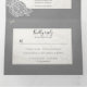 Line art floral, poppies on a light grey, textured background, a modern wedding invitation tri-fold all in one combination.