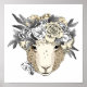This design features a sheep dressed in a floral halo.