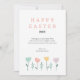 Floral Happy Easter Cute Modern Pastel Pink Flower Holiday Card features pastel pink "HAPPY EASTER" text with Easter wishes in a modern and elegant font. Beneath the text, a row of delicate flowers in green, red, yellow, and purple adds a charming touch.