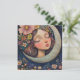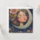 Immerse yourself in timeless beauty with this vintage-inspired greeting card featuring a woman adorned with a stunning floral headdress, framed by a crescent moon. The elegant composition captures a sense of mystique and grace, making it perfect for those who appreciate classic artistry and celestial themes. A thoughtful gift for retro aesthetics and unique art.
