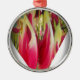 This artwork presents a heart-shaped composition intricately formed by stylised floral elements. The dominant colours include vibrant shades of red and pink, beautifully contrasted against a dark, almost black background that features a subtle gradient fading towards white within the heart itself.