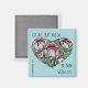 Pretty decorative floral magnet (heart of blossoms on pale blue tile), with scripture verse from 1 Corinthians 16:14 "Let all that you do be done with love."