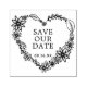 Pretty floral heart wreath with "save our date" in classic serif and the date in modern san serif typography. Great stamp for wedding or any special occasion.