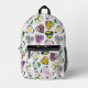 This floral hearts Printed Backpack has hearts filled with flowers in a scattered pattern on a classic white and black dotted pattern. You can make this floral hearts pattern large or smaller on the Printed Backpack. Personalise with your name or change the black name to pink or yellow instead of black.