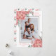 Floral illustration Christmas card with a custom family photo. Design in pink, green, and grey colours for the Holidays.