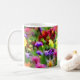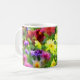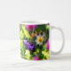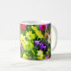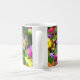 This artistic, decorative mug is covered with masses of flowers in every colour of the rainbow. Enjoy the yellow, orange, pink, red, blue, purple and white floral pattern set on a background of green leaves. When viewing this, one is reminded of a French Impressionist painting.