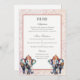 Celebrate your culinary journey with this elegant wedding reception dinner menu! Featuring a captivating floral elephant design, a symbol of strength and blessings in Indian weddings, this menu sets the stage for a delicious and memorable evening. Personalise the front of the menu with your thoughtfully curated dishes, showcasing the flavours of your special day. The back of the menu offers a unique space to personalise with a heartfelt thank you note to your guests for sharing in your joy, or perhaps some fun facts about the happy couple, adding a touch of personality to your wedding celebration. This beautiful menu will not only tantalise your guests' taste buds but also serve as a cherished keepsake for them to remember the flavours and festivities of your wedding night.
