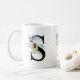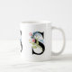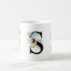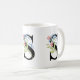 A personalised coffee mug with the letter "S" monogram, featuring decorative watercolor floral and foliage illustrations. Easily customise it with your name or create a unique gift for your loved ones.