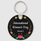 Floral International Womens Day keychain. A beautiful black floral background with modern typography International Women's Day March 8. Celebrate women from all over the world. Perfect thoughtful gift for women & girls!