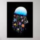 Original digital painting, beautiful teal and white jellyfish with floral garden tentacles. Soft colourful flowers and leaves flowing in the water under the jellyfish. Something whimsical to decorate your world.