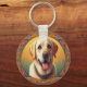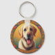 Floral Labrador Retriever Dog Colourful Border Key Ring