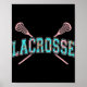 Floral Lacrosse Crossed Sticks LAX Girly Teal PInk Poster