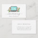 Beautiful design for teachers and educators specialising in virtual tutoring, remote learning, or online instruction features a watercolor laptop computer illustration flanked by bouquets of blush pink peony flowers. Customise the front with two lines of text in handwritten script and classic serif lettering, and add your initials or monogram to the aqua laptop screen. Add your contact information to the reverse side.