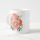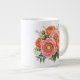 This jumbo size mug is shown in white with a pretty floral watercolor print in colours of pink and orange.