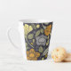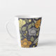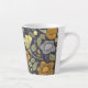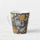Floral latte mug with spring garden flowers of warm and bright colours on a dark background