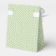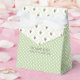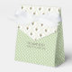 Pretty green and white wedding favour gift box with a tiny polka dot pattern and a lattice look on the flap with colourful flowers. Personalise the brown text, on the front, to read what you want.