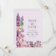 Floral Lavender Save The Date. Featuring elegant calligraphy script and exquisite hand-painted watercolor artwork in soft lavender, blush pink, deep burgundy, and vibrant purple, adorned with delicate wildflowers, roses, and elegant greenery. Perfect for spring, summer, and fall weddings, each item in this collection whispers of love, enchantment, and timeless romance setting the stage for your unforgettable celebration. Let the beauty of nature and the charm of vintage elegance adorn your special day with our captivating collection.