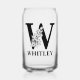 Floral Letter W Monogram and Personalised Name Can Glass