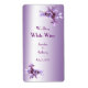 This wedding white wine bottle label features pink and mauve lilac sprays on a purple background. Customise the text for your special occasion.
