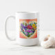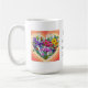 Coffee mug to honour the first-time grandma! Heart of flowers and LOVE, with the following text in the middle: "the best moms get promoted to mimi"