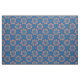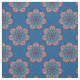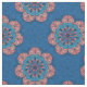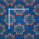 A design of beautiful hand drawn mandala flowers in a decorative style, arranged in a seamless symmetrical pattern. Coloured in shades of navy blue and salmon pink.