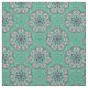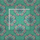A design of beautiful hand drawn mandala flowers in a decorative style, arranged in a seamless symmetrical pattern. Coloured in shades of mint green and light lavender purples.