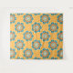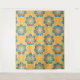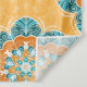 A design of beautiful hand drawn mandala flowers in a decorative style, arranged in a seamless symmetrical pattern. Coloured in Turquoise & teal, and bright oranges.