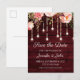 Floral Maroon Wooden Rustic Wedding Save the Date Announcement Postcard