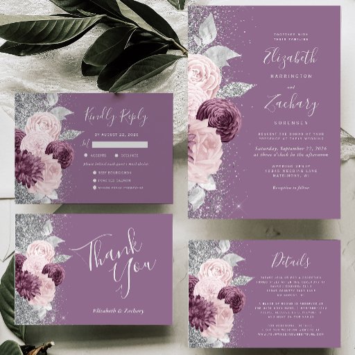 Floral Mauve Blush Silver Glitter Wedding SuiteDesigned by Akhates Designs