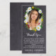 Watercolor Daisy Flowers Photo Funeral Thank You Cards. These sympathy funeral cards feature a custom photo on a rustic chalkboard slate with a daisy floral frame design . These memorial sympathy cards are perfect for funeral thank you cards, or celebration of life thank you cards.