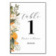 Floral Menu Table Citrus Oranges Numbers Table Number