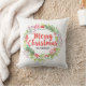 Floral Merry Christmas Red Berry Wreath Cushion