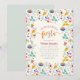 Colourful and fun, that's what this design is about. This invitation is perfect for quinceañera fiesta celebrations. Featuring floral Mexican embroidery with birds, branches, flowers and hearts with some of the colours being pink, blue, orange and yellow. "Fiesta" appears in a modern script with ligatures. This item is part of our Quinceañera Fiesta suite.