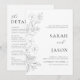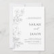 Modern Minimalist Black Floral Wedding Invitation featuring delicate black botanical line art for a timeless, elegant look. This double-sided wedding invite includes a clean front design with your names, and a fully customizable back for ceremony and reception details, RSVP info, and wedding website. Perfect for couples wanting a modern, classy, minimalist wedding stationery suite with a refined luxury feel. Ideal for black and white weddings, contemporary weddings, and elegant floral themes.