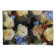 Dive into a timeless display of white roses and blue hydrangeas! This seamless black background is graced with watercolor elegance.