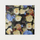Dive into a timeless display of white roses and blue hydrangeas! This seamless black background is graced with watercolor elegance.