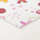 Bright and happy watercolor wildflower and leaves painting in purple, pink and teal green on a white background.