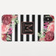 Floral Monogram Black White Striped Rose Gold Case-Mate iPhone Case