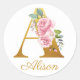 Floral Monogram Custom Name Initial Botanical Classic Round Sticker