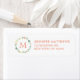 FLORAL MONOGRAM | RETURN ADDRESS LABELS. MonogramPostageStamps © Peach, yellow, mint green colours make up this floral wreath surrounding the coral or peach monogram initial. Other colours available. Perfect floral design for spring weddings, summer weddings, rustic weddings, country weddings.