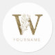 Floral Monogram W Elegant Gold Foliage Classic Round Sticker