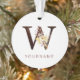 Monogram W embellished with rich autumn hued flowers, leaves and foliage elements.